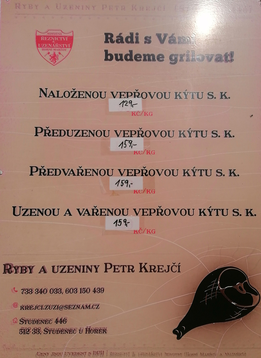 Prodejem Maršovské Uzeniny od pana Novotného, který dělá všechny výrobky tradiční metodou a jen pro svůj obchod.
